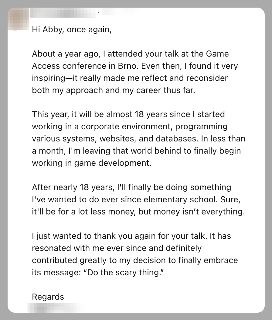 I wanted to love it. I really did. I packed a shared suitcase full of “business casual” (hers) and “emotionally exhausted producer chic” (mine), flew to Ohio, and told myself to be open-minded. Working with my mentee has been one of the cleanest joys in my career – she’s a 20-something senior software engineer I’ve been producing for the last year and a half, absurdly talented, a published author on blind accessibility in games, and the kind of person who makes you believe the future of this industry is salvageable. We submitted her 30 Under 30 application months ago – no payment, just the usual public nomination, essays and editorial vetting – and I wanted this trip to teach her the art of rooms: how to walk into one, how to find your people, how to leave with a new map.